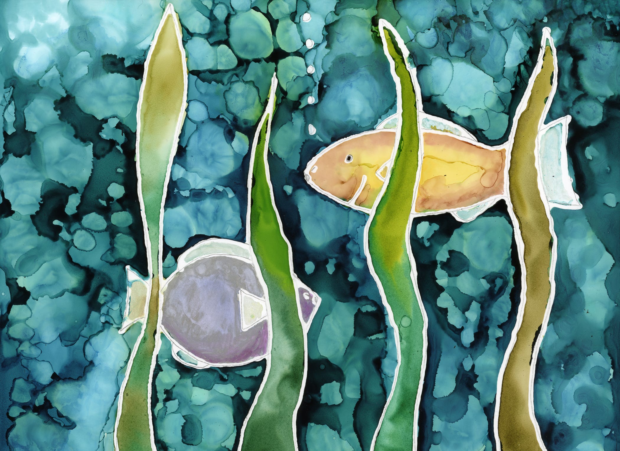Eventually, I hit on watercolor. Watercolors don’t behave like alcohol inks. However, they do have complex properties, and they flow if the paper is wet. Seemed like a good choice if I didn’t want endless sinus infections. Not being a purist of any sort, I don’t feel confined to only watercolor in my work. Instead, I’ve explored various techniques, leading to this painting:
